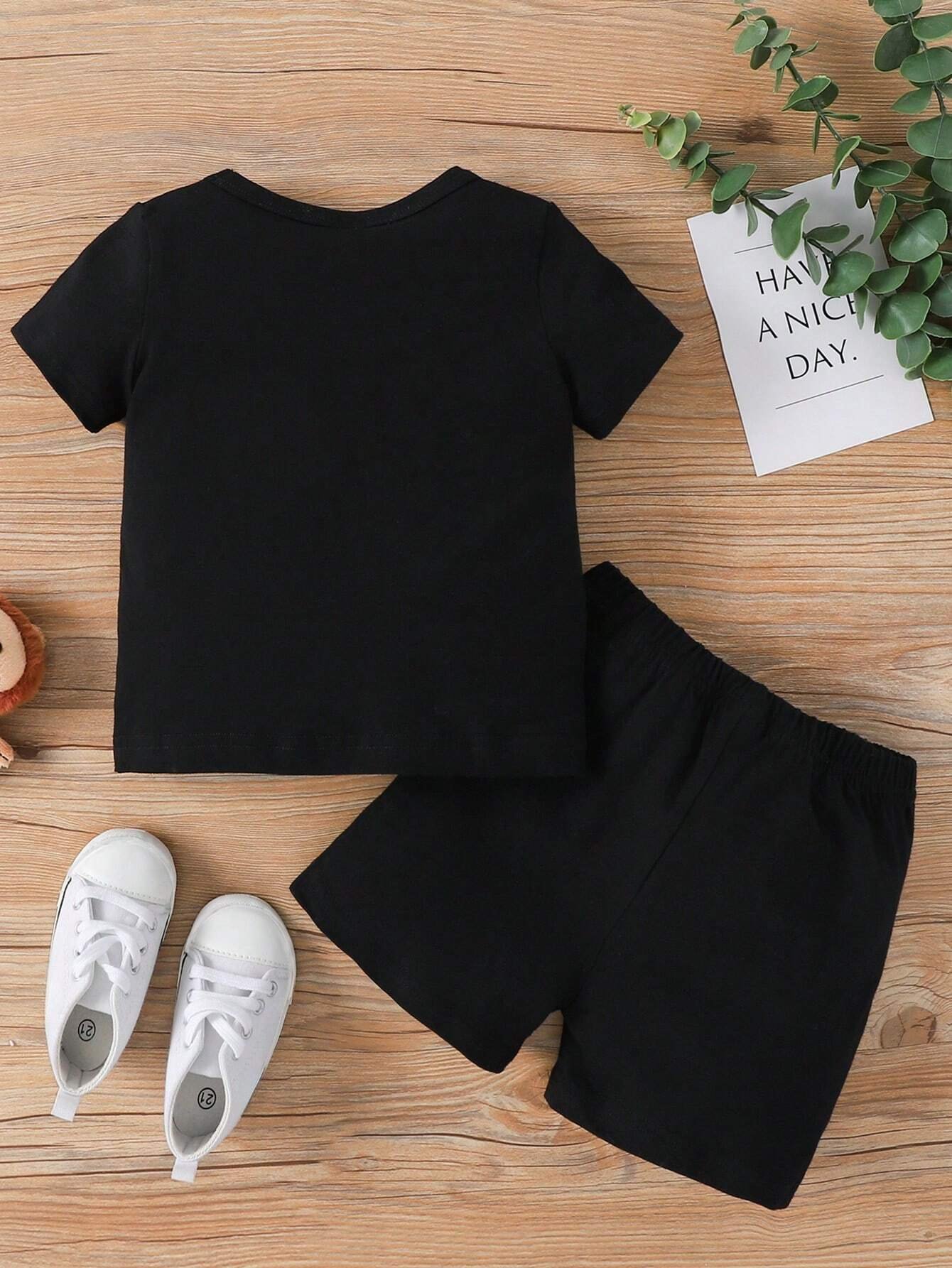 Los shorts cortos complementan perfectamente el conjunto gracias a su cintura elástica, que facilita colocarlos y retirarlos con facilidad. Su diseño deportivo y ajuste regular ofrecen comodidad continua, permitiendo moverse con libertad al jugar, caminar o descansar. El color negro aporta versatilidad, haciendo que este conjunto pueda combinarse fácilmente con distintos tipos de calzado y accesorios.