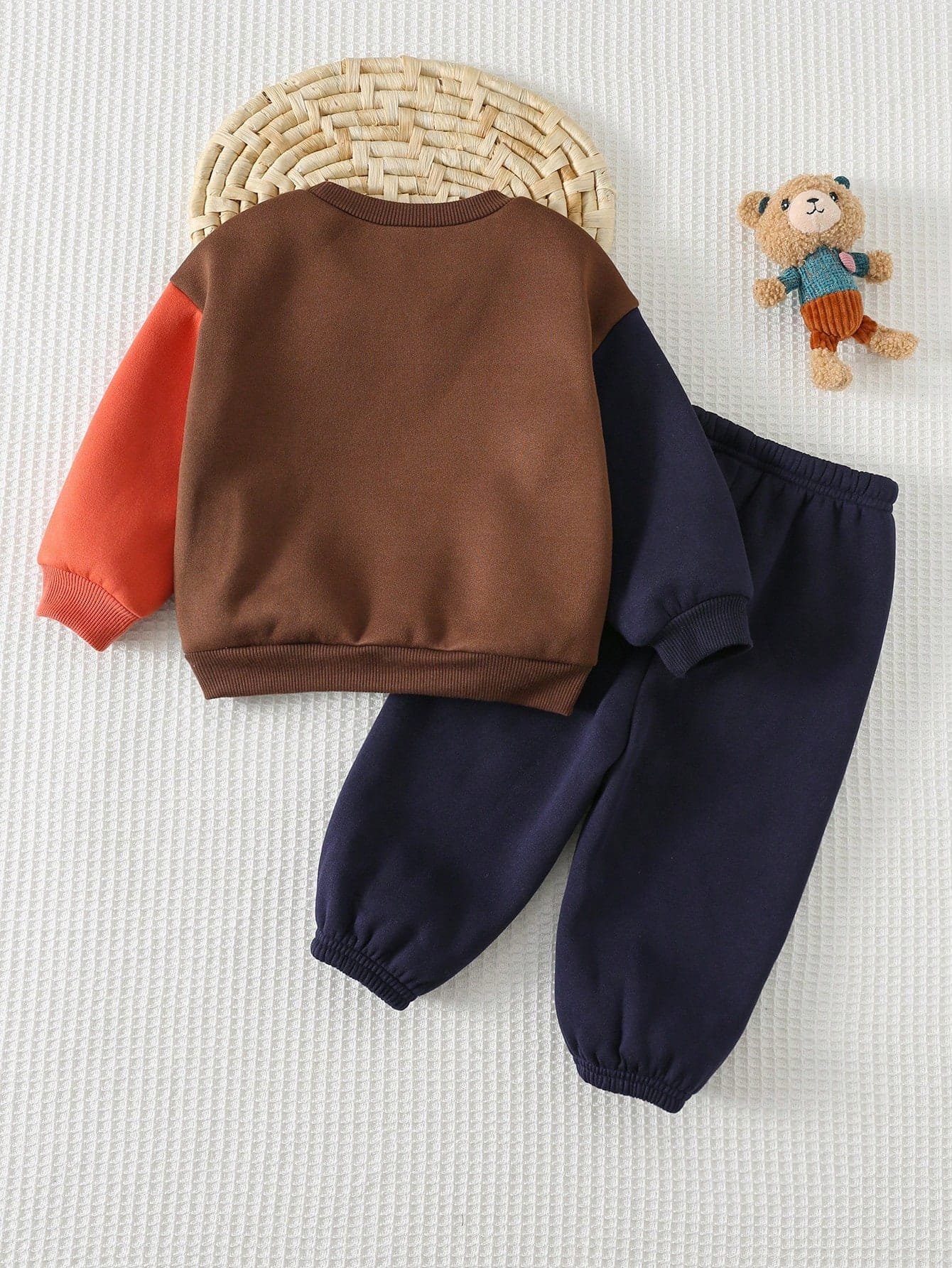 El Conjunto café con sudadera está confeccionado en 100% poliéster, un material resistente, duradero y fácil de cuidar. Mantiene su forma y textura tras el lavado, siendo ideal para el uso frecuente. Puede lavarse en lavadora o llevarse a limpieza en seco profesional, según preferencia.