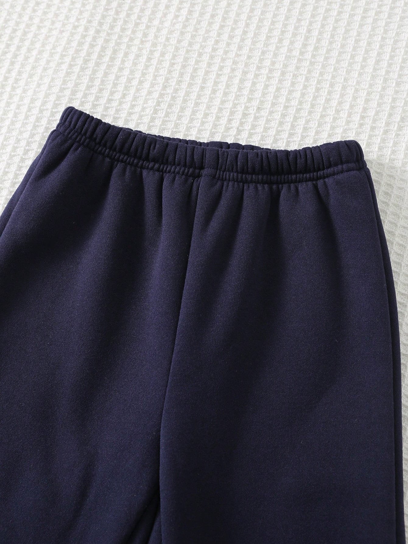El pantalón jogger en color azul marino complementa perfectamente la sudadera, creando un contraste armonioso y versátil. Su cintura elástica se adapta suavemente, brindando un ajuste cómodo sin apretar. El diseño largo y elástico facilita el movimiento natural, permitiendo que el conjunto se mantenga en su lugar durante el uso. No es transparente y no cuenta con forro, lo que lo hace práctico para combinar con otras prendas según la temperatura.