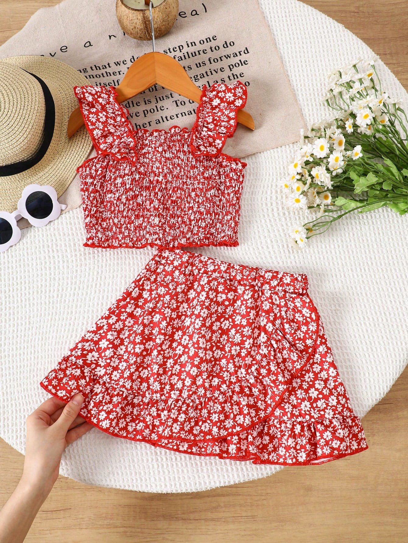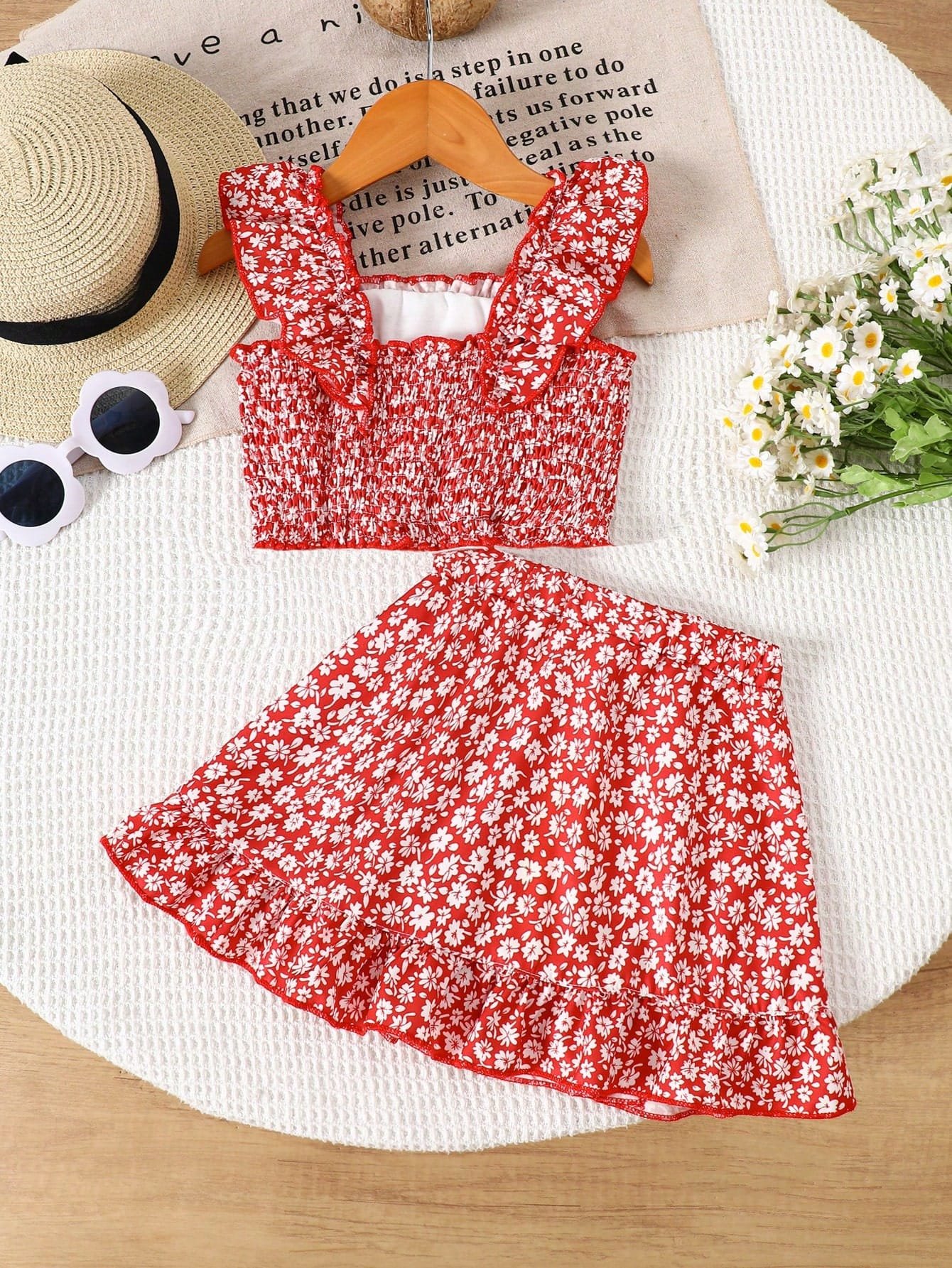 El Conjunto rojo floral volantes verano es una opción vibrante, fresca y encantadora para los días soleados. Diseñado especialmente para primavera y verano, este set de 2 piezas combina una blusa ajustada con delicados volantes y una falda con movimiento ligero, creando un look dulce y perfecto para vacaciones, paseos familiares o uso diario.