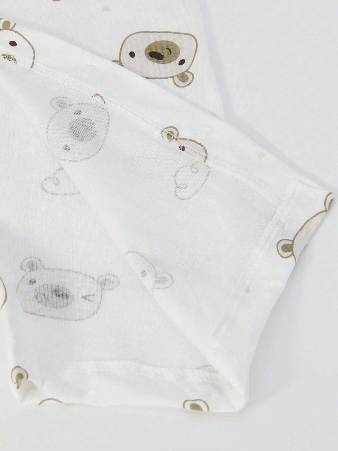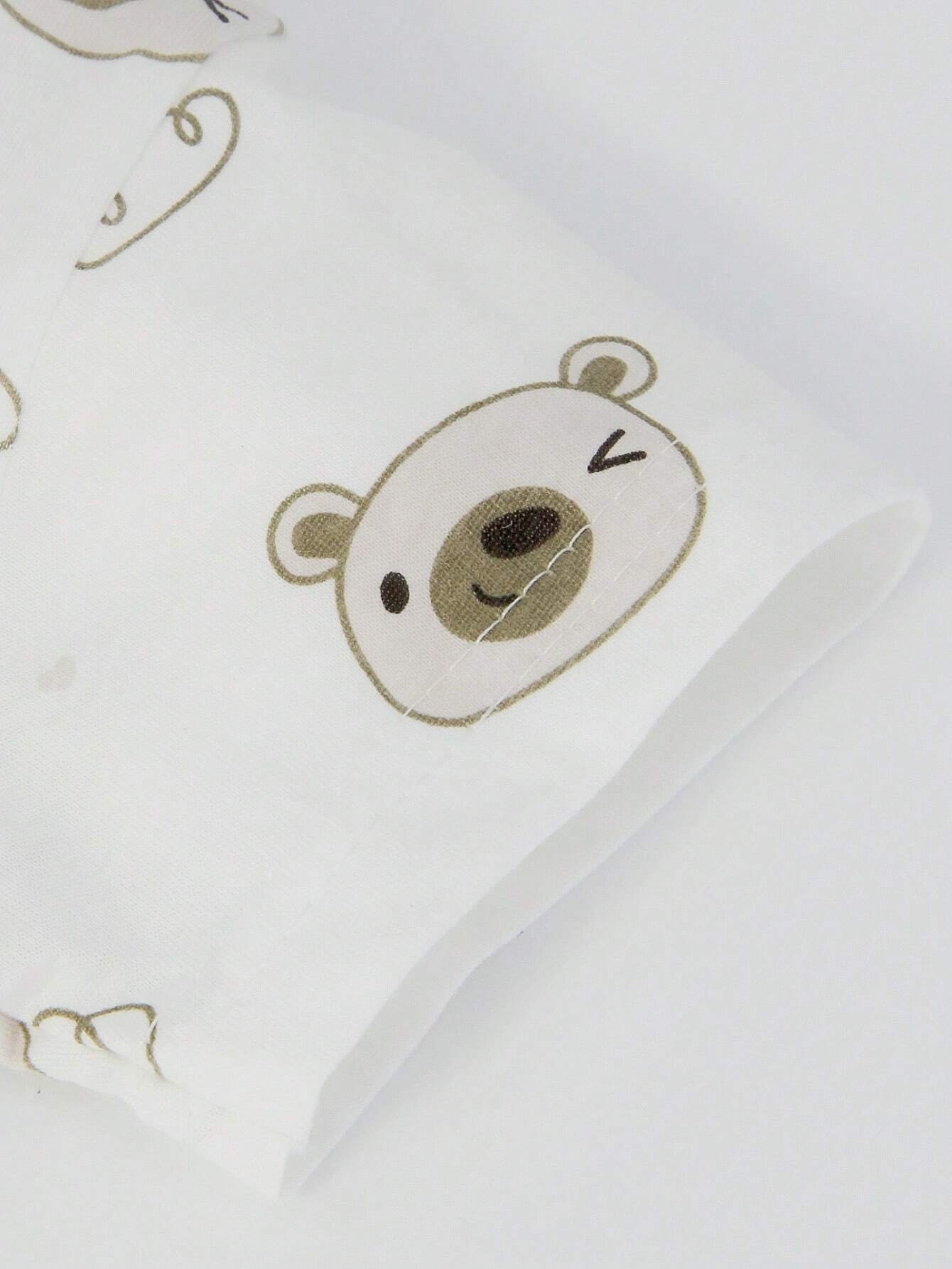 El estampado integral de ositos aporta un estilo dulce y casual, ideal para combinar con otros accesorios como gorritos, medias o mantas. Gracias a su tono neutro, este pelele es fácil de integrar en cualquier guardarropa infantil, convirtiéndose en una prenda versátil y funcional.