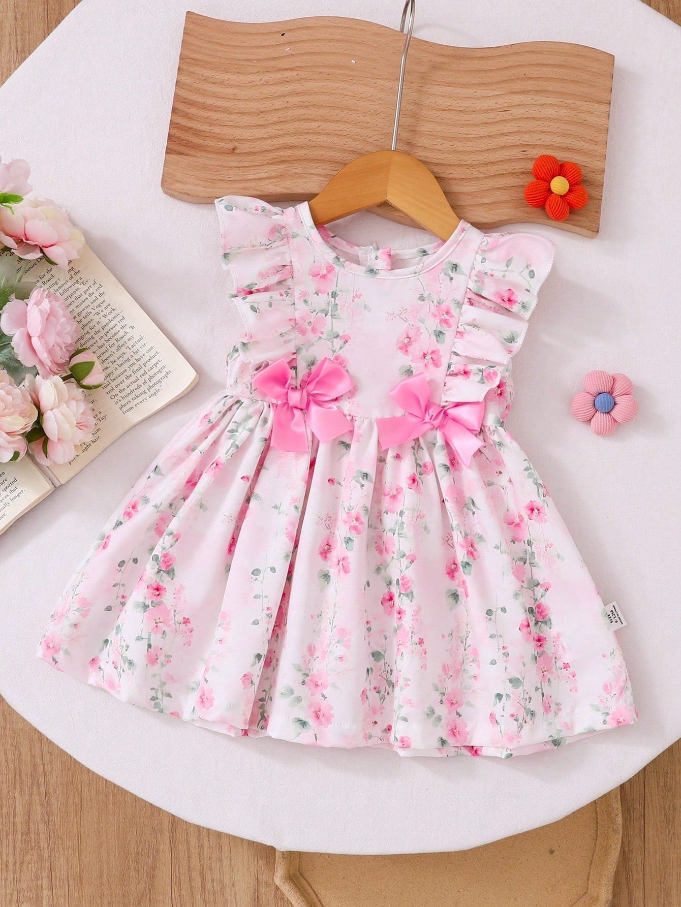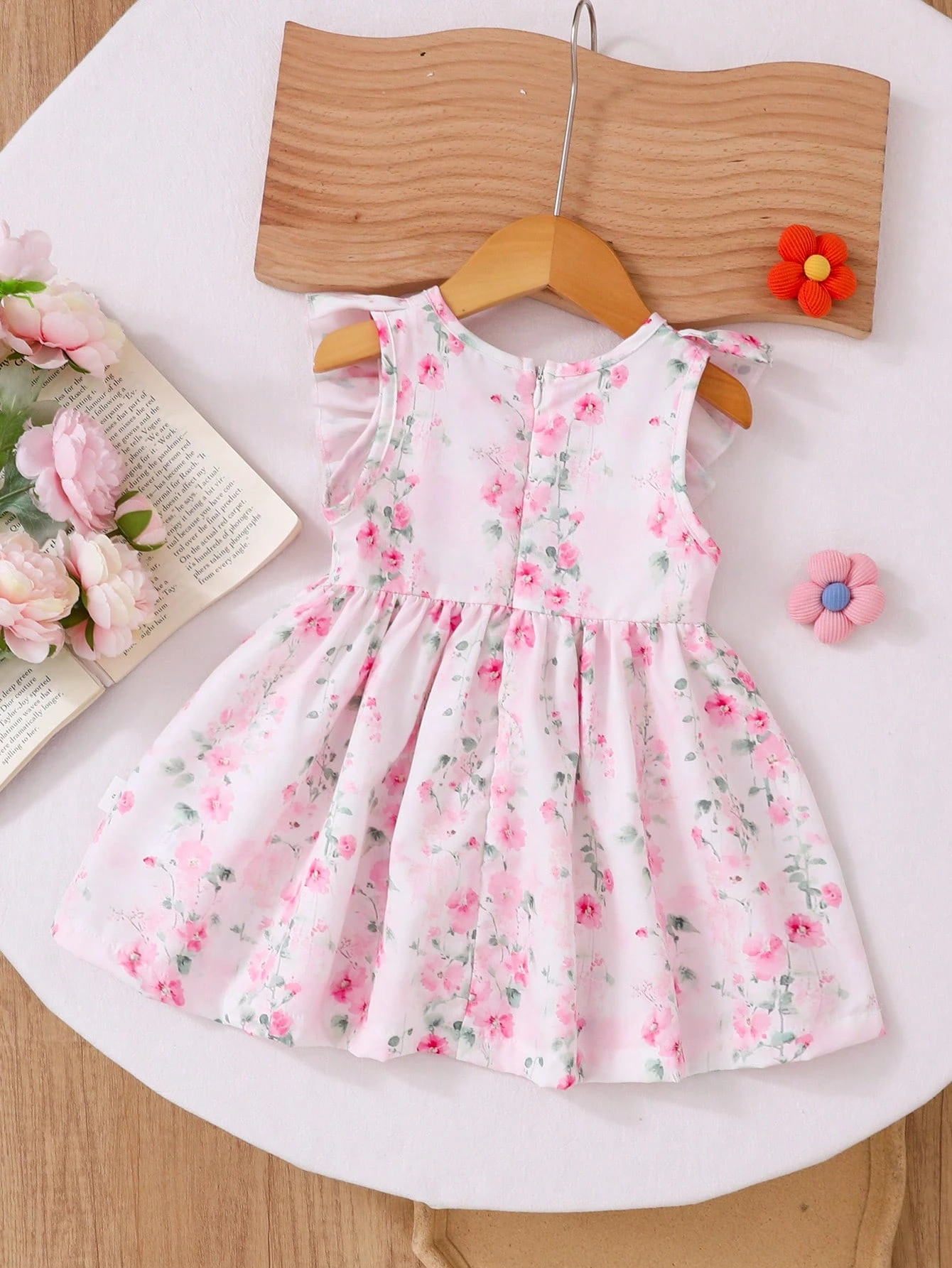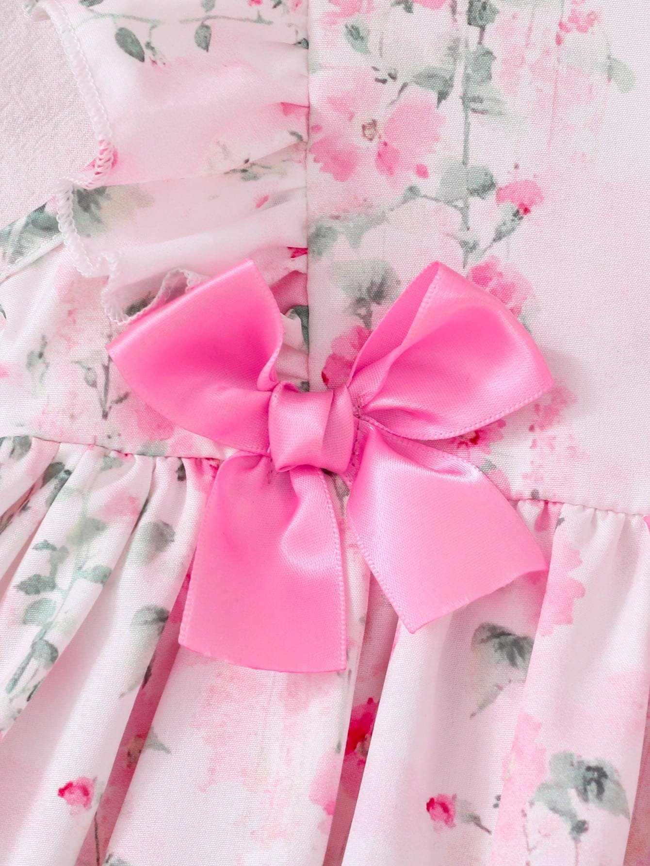 El diseño entallado en la parte superior y acampanado en la parte inferior permite un ajuste cómodo y favorecedor, brindando libertad de movimiento durante el uso diario. El Vestido floral rosa con volantes en las mangas añade un detalle especial que realza la silueta y aporta un acabado delicado y moderno. Además, el lazo decorativo en la parte frontal le da un toque encantador que eleva el diseño sin perder su esencia casual.