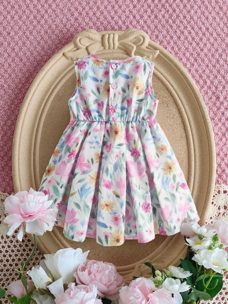 El estampado floral tipo acuarela, con flores en tonos suaves como rosa, amarillo, lila y verde, aporta un aire fresco, primaveral y muy delicado. Acompañado de un hermoso moño rosa al frente, este vestido se convierte en la opción ideal para ocasiones especiales como cumpleaños, sesiones de fotos, picnics, celebraciones familiares o fiestas.